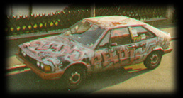![]() 6-27 Schichten Design-Lackierung | Nachdem einige Unterschriften, Sprüche und Comicfiguren den Wagen zierten, kam der Chef der KFZ-Wartungseinheit mit einer Sprühdose cremeweiß für Markierungszwecke und lackierte ein paar Begriffe auf die Motorhaube, die mir die Nettiquette verbietet hier zu nennen. Damit war der Hammer gefallen und das KFZ wurde nach Sprühdosen durchsucht. Am Ende der Mittagspause sah dann der Wagen aus, wie auf dem Foto nebenan. |