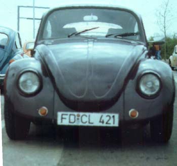 ![]() Blöderweise kam irgendwann der Edition-One Golf und jeder machte sein Auto lila, also wurde er kurzerhand komplett zerlegt, abgehoben, angeschliffen und grau lackiert. Dabei stellte ich für hiesige Verhältnisse auch gleich noch einen Rekord auf. Am Sonntag wurde die blanke Bodengruppe grundiert und lackiert, am Montag die Karosse. An diesem Tag wurde auch die Bodengruppe wieder fertig zusammengebaut (Achsen, Getriebe, neue Bremsleitungen und -schläuche usw.). Am Dienstag fing ich an aus ca 150m blauem Kabel einen Kabelbaum zu stricken und schraubte die Kotflügel und die Türen vorsichtig an das frischlackierte Häusschen. Am Donnerstag nachmittag gings dann los nach Chateau d'Oex. Dass ich in dieser Woche nicht viel geschlafen habe, ist klar und wenn meine damalige Freundin nicht just am Sonntag Schluß gemacht hätte, hätte ich das auch nie geschafft, aber irgendwie muß man sich ja ablenken. Nach einem Motorbrand 1995 (Regulierung durch die Kaskoversicherung schon nach 8 Monaten, danke Allianz!!!) kam erstmal das Aus für den Kleinen. Ich bin dann viel mit der Ratte gefahren. Irgendwie bekam ich aber dann doch mal wieder Lust und montierte 7x15 Dreispeichen-Momos und eine deftige Anlage und seitdem erzähle ich, dass er dringend mal wieder lackiert werden muss. Zehn Jahre TopChop mit Gas-Adjust Dämpfern und über 100.000 km mit weniger als 5cm Bodenfreiheit hinterlassen deutliche Spuren an der Karosse und ersetzte das mittlerweile durchgegammelte Rahmenkopfunterteil, tauschte die bunte Innenausstattung gegen die zeitgemäßeren Carbon-Seitenverkleidungen, montierte einen 924er Drehzahlmesser, einen Digitaltacho, ein 28er Raid, erneuerte auch gleich noch die Bremsen (vorne Typ3, hinten 19er Radbremser) und testete einen günstig erstandenen 1776er. Dieser erwies sich allerdings als reinrassiger 1600er aber er brachte mich Ende 2000 zum TÜV und 2001 ab und zu auf ein Treffen. Im Moment spare ich gerade für die letzten Brocken für meinen 2Liter Typ1 und ein paar Vollschalen zum Restaurieren habe ich auch schon. ![]() Vielen Dank an KLE für den Größenvergleich