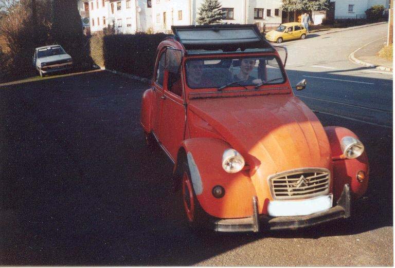 | Eigentlich hätte es ja eine Ente werden sollen, mein erstes Auto. Wurde es auch, denn schon etwa 7 Jahre vor meinem Führerschein bekam ich so ein Gefährt von meinem Onkel quasi geschenkt. Mit diesem Auto lernte ich das Autofahren, wurde mit den Regeln der Kaltverformung von Blech (Stoßtange, Kotflügel, ect. contra Hauswand, gegnerische Stoßstange usw...) vertraut gemacht (learning by doing nennt sich das fachsprachlich) und obwohl seit dieser Zeit nie angemeldet, gönnte ich ihr auch mal eine Ausfahrt abseits des großelterlichen Privatparkplatzes. |