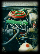 | Eigentlich war der Motor aus einem 77er Passat, den ich zuvor für 100,-DM ausgeschlachtet hatte, für meinen VW 1600 TL bestimmt gewesen, bot sich aber jetzt an eingesetzt zu werden. Die halbe Nachbarschaft half, den Motorblock an einem Balken mit einem Abschleppseil angebunden in den Motorraum zu heben - mitten auf der Straße übrigens. Darauf kam der 83er Zylinderkopf und siehe da, die eigentlich nicht so vorgesehene Kombination lief absolut prima. Irgendwie standen zwar die verkehrten Buchstaben auf dem Block, aber wen kümmertīs, 75 PS bleiben 75 PS. Es paßten nicht mehr alle Verblechungen mehr auf den Motor - da hatte VW die Befestigungen im Laufe der Jahre geändert, aber ohne sah das alles auch viel schneller aus. Ich brachte gleich noch ein wenig mehr Farbe in den Motorraum - Werkstätten waren immer sehr erstaunt, als sich die Haube hob... | ![]() Duschschläuche über den Zündkabeln etc... |