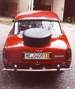 ![]() Nicht sehr dezentes Reserverad | Auf einem Parkplatz stand ein ganz komisches Auto, wie es sie nur in Wien geben konnte. Grau und sehr merkwürdig geformt, wie ich es noch nie gesehen hatte. Eigentlich sah er aus wie ein Wartburg, aber viel edler. Hinten stand in verchromten Lettern groß "Rover 2000" drauf, und es sah auch wirklich ein bißchen aus wie ein Auto, mit dem man zum Flughafen von Raumschiff Orion fahren würde. Das Markenzeichen bestand aus einem großen Wikingerschiff und oben auf dem Kofferraum war ein Ersatzrad montiert. Da mußte ich dann doch mal einen Blick 'reinwerfen .... hab mir die Nase an der Scheibe plattgedrückt. Alte, beige Lederpolster, und ein riesiges Chaos an Papieren, Akten und sonstigem Krimskrams auf dem Beifahrersitz. Statt eines normalen Tachometers sah es mehr wie ein großes Radio vor dem Lenkrad aus. |